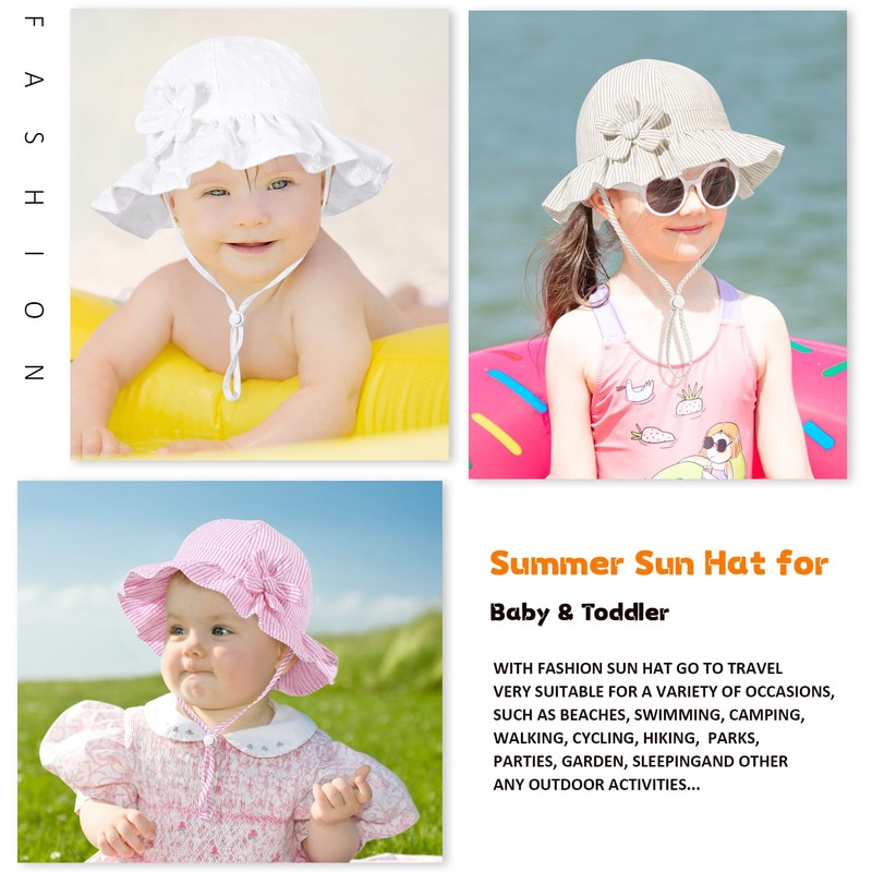 - ADJUSTABLE: Outer hat drawstring offers a customized fit and adjusts as your baby grows. Chin-strap feature helps ensure that the baby sun hat remains secured on when windy. the chin strap are adjustable to easily create the best.