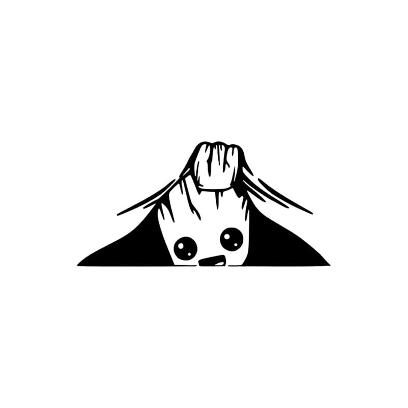 Baby Groot Peeking Car Decal, Black Vinyl Sticker, 6.3 x 3.1 inches