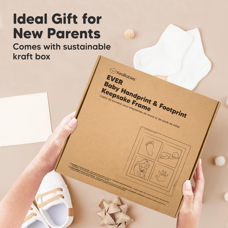 The Ever Hand and Footprint Keepsake Kit makes a perfect baby shower gift for newborn babies. It's a thoughtful and useful gift that will be loved by new parents. The kit comes in a cute gift box, making it a great choice for baby keepsake frames, baby hand and footprint maker, baby casting kit, baby foot print books, or baby footprint frames. You can create a personalized baby foot imprint with our easy-to-use baby footprint kit and handprint kit. It's the perfect baby keepsake gift or newborn baby girl gifts idea.