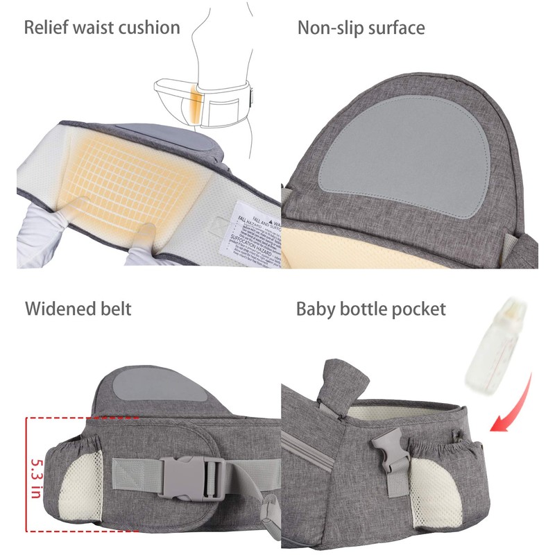- 【Safety and Ergonomically Designed】Your baby's safety is our top priority. The anti-fall safety belt is designed to secure your toddler in place, wrapping snugly around their abdomen to prevent any accidental falls. The waist stool is ergonomically designed. The seat is angled with 30 degrees, providing a more comfortable seating experience. The core of the stool is lightweight, conforming to your baby's natural sitting posture. The seat is also thickened and ensure a non-slip surface.
