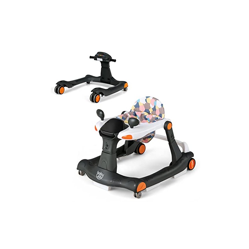 BABY JOY 2-in-1 Baby Walker, Foldable Activity Walker with Adjustable Height & Speed, Music, Lights, Mirrors, Padded Seat Cushion, Activity Baby Push Walker for Toddler Boys Girls, Ages 6 – 18 Months