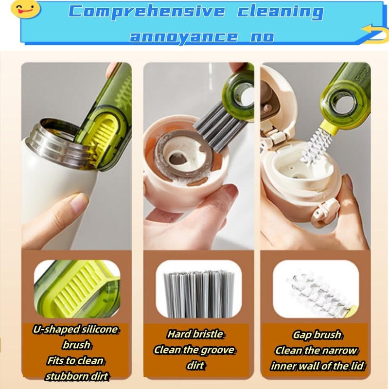 - 【3 in 1 Multifunctional】:This bottle cleaning brush consists of U-shaped brush, corner brush and crevice brush, U-shaped brush can be used for bottle, cup lid cleaning, crevice cleaning brush for cup lid, kitchen corner crevice cleaning, corner brush can clean the container edge groove stains, a cleaning brush multiple functions, convenient to use.