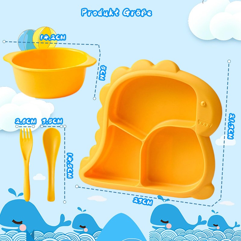 - Cute pattern - The children's plate with dinosaur pattern has a cute and beautiful appearance that appeals to children, and is in bright lemon yellow, which children like very well. With this cute baby plate, meal time becomes less a challenge and children love to eat!