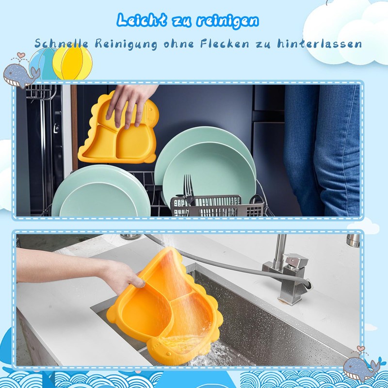 4. The divided children's plate set is easy to clean, rinse clean, no remaining stains, dishwasher safe.