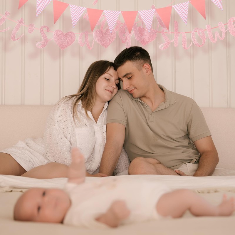Baby Shower Banner, Mummy to Be Sash and Pink Bunting, Baby Shower Decorations Girl, It's a Girl Banner for Family Girls Newborn Birthday Homecoming Theme Party