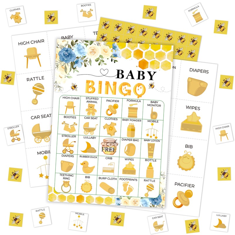 Baby Shower Bingo Card, Bumble Bee Bingo Game For Adults Large Group Family Friends, Gender Neutral Baby Shower Bingo Set, Honey Bee Bingo Kit For Gender Reveal Party, Holiday Games For 24 Players -08