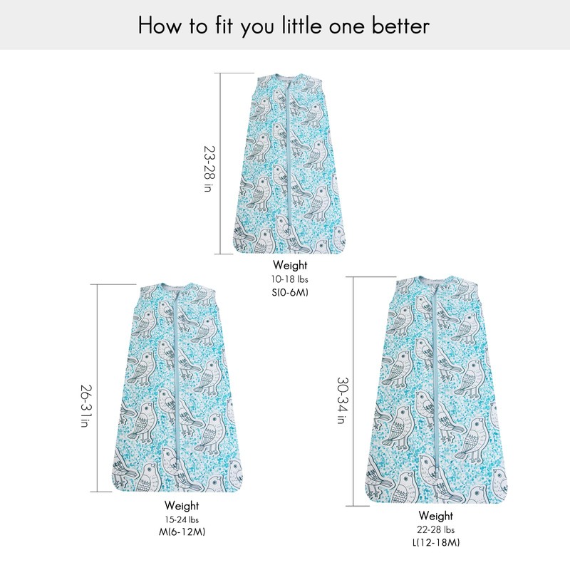 Baby Sleep Sack Rayon from Bamboo, 2 Pack Soft Baby Wearable Blankets with 2-Way Zipper,0-6 Months Bird Pattern