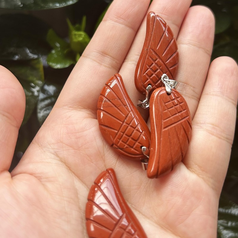 Bacatgem 2 Pcs Natural Red Jasper Winged Figurines Crystals and Healing Stones,Haped DIY Winged Pendant