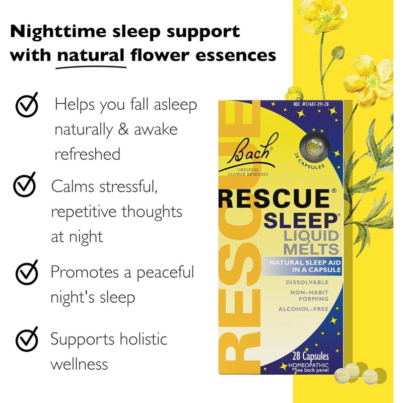 - BACH RESCUE SLEEP LIQUID MELTS: Pleasant tasting natural melatonin free orange vanilla flavored quick-dissolve capsules to help ease stress and calm busy, repetitive thoughts