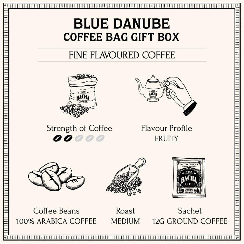 Bacha Coffee | Blue Danube Fine Flavoured, Medium Roast, 12 * 12g Individually Wrapped 100% Arabica Single Serve Filter Bags
