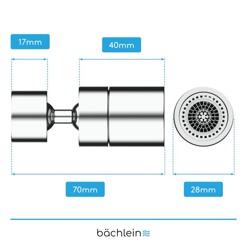 Bächlein Universal Dual Jet Chrome Tap Attachment - Rotating Tap Aerator for Kitchen Faucets