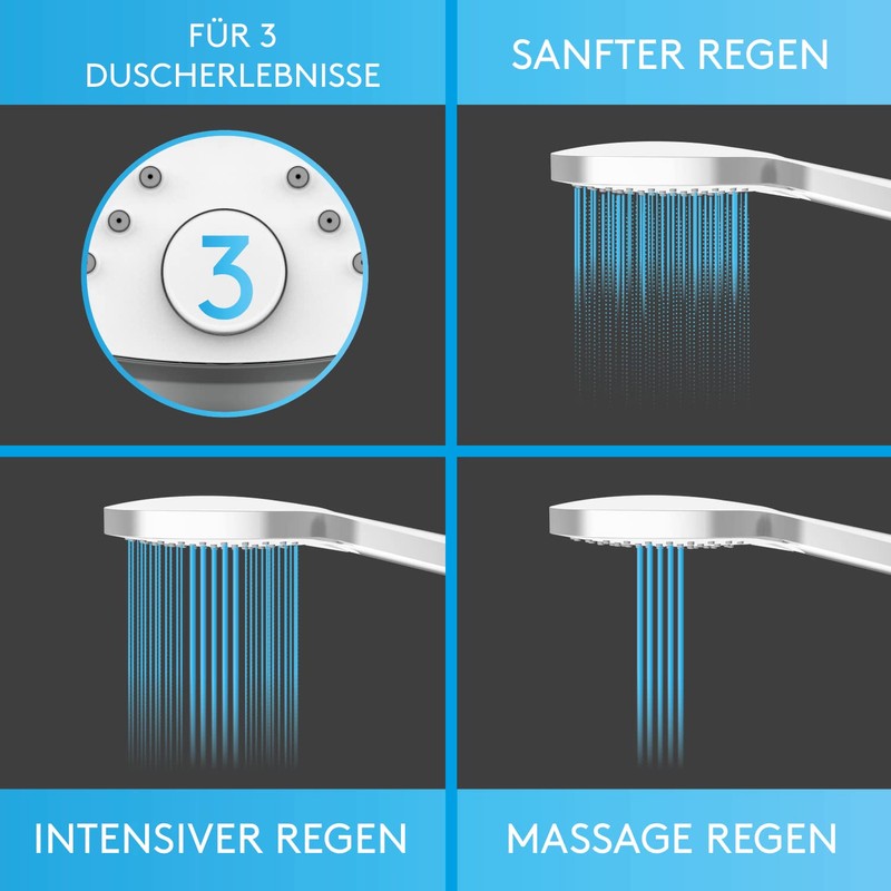 Bächlein Universal Shower Head with 3 Jet Types, Easy to Change with Practica...