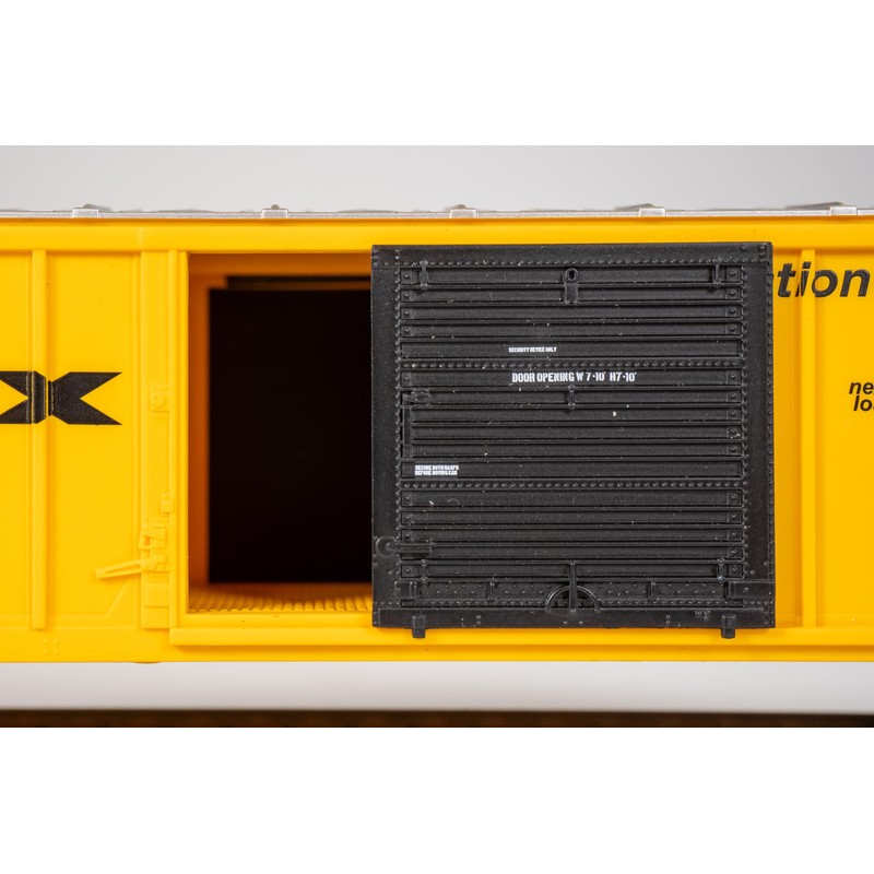 • Features an operating door, metal wheels, and E-Z Mate Mark II couplers