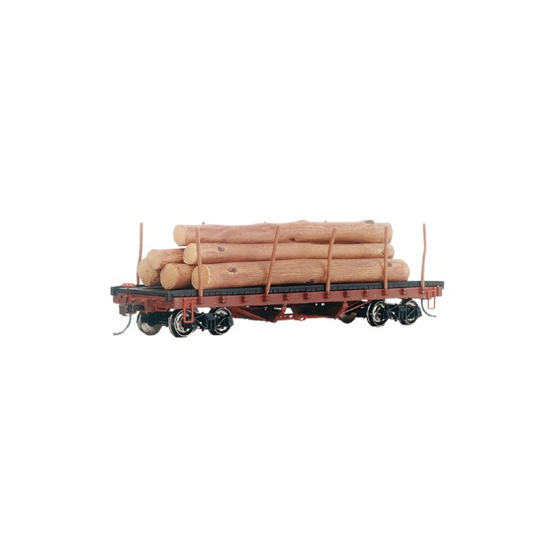 ACF 40' log car with logs includes blackened machined-metal wheels with RP25 contours. It is magnetically operated, body mounted E-Z Mate couplers. Non- magnetic, blackened brass axles with needlepoint bearings. Celcon trucks added weight for optimum tracking.