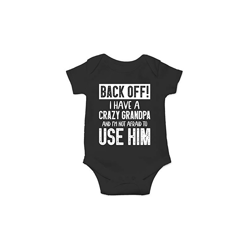 Back Off !! I Have a Crazy Grandpa and I'm Not Afraid To Use Him - Funny Baby Essentials Romper (Newborn, Black)