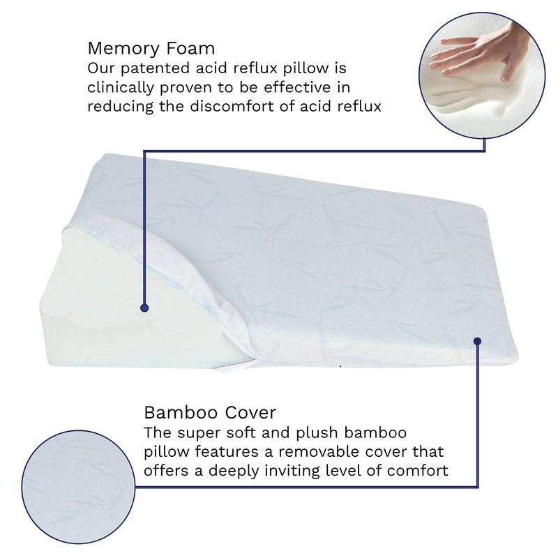 The pain from acid reflux, Gerd, heartburn, and other digestive issues can be extremely painful and uncomfortable. It can make sleeping well virtually impossible! That’s why we’re so excited to introduce you to our simple and effective solution— our Memory Foam Sleeping Wedge Pillow.