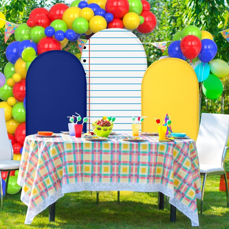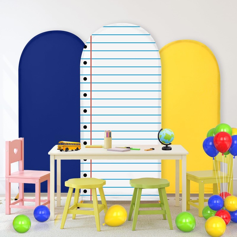 The welcome back to school decorations arch cover set comes in 3 different sizes to fit various arch stands. With designs in classic yellow, dark blue, and notebook paper patterns, these back to school spandex arch covers bring a lively and cheerful vibe to back-to-school events.