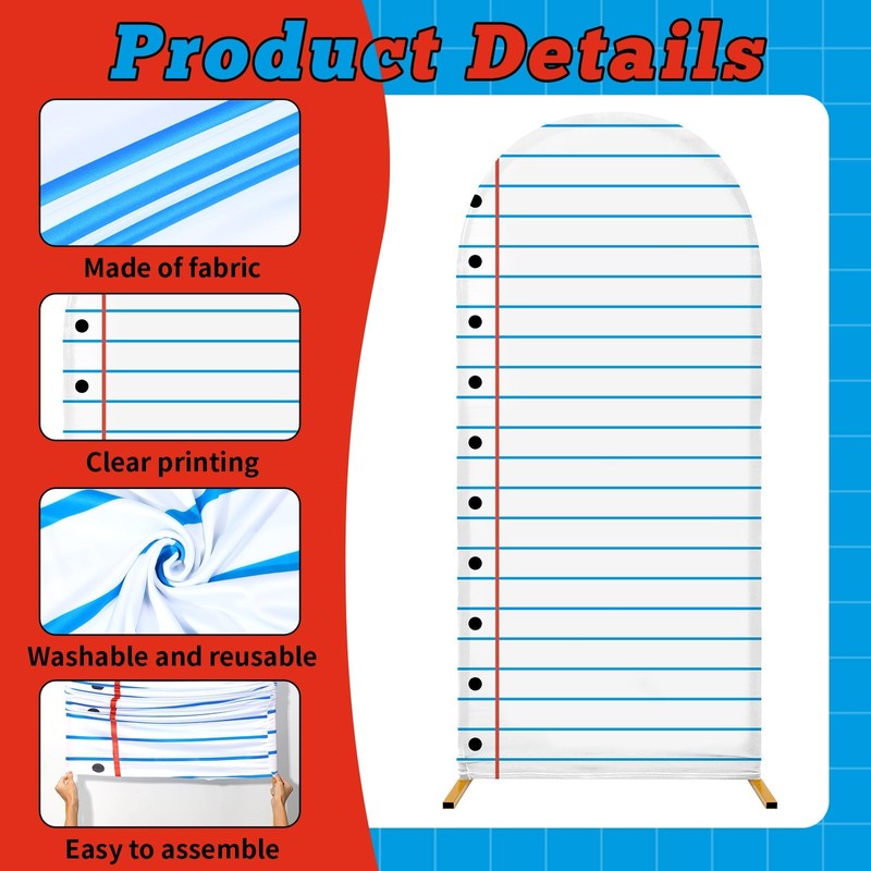 Back to School Arch Backdrop Cover Set of 3 First Day of School Spandex Fitted Arch Backdrop Stand Covers 4ft 5ft 6ft Notebook Paper Background for Classroom Teacher Students Welcome Back Party Decor