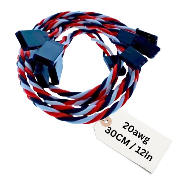 BackBayRC - Twisted 20awg Servo Extension Wire - 100 Strands for RC Vehicles, Drones, E-Bikes - 6 Lengths / 5 Cables per Pack (30CM / 12in / 1ft)