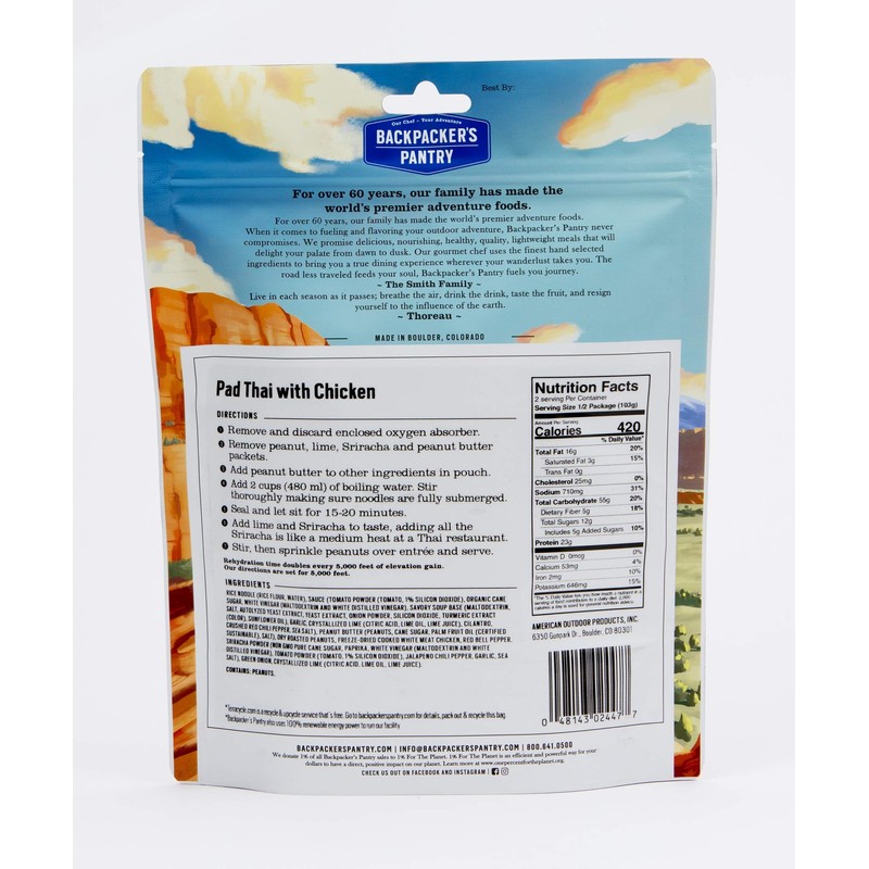 Backpacker's Pantry Pad Thai with Chicken | Freeze Dried Backpacking & Camping Food, 1 Count