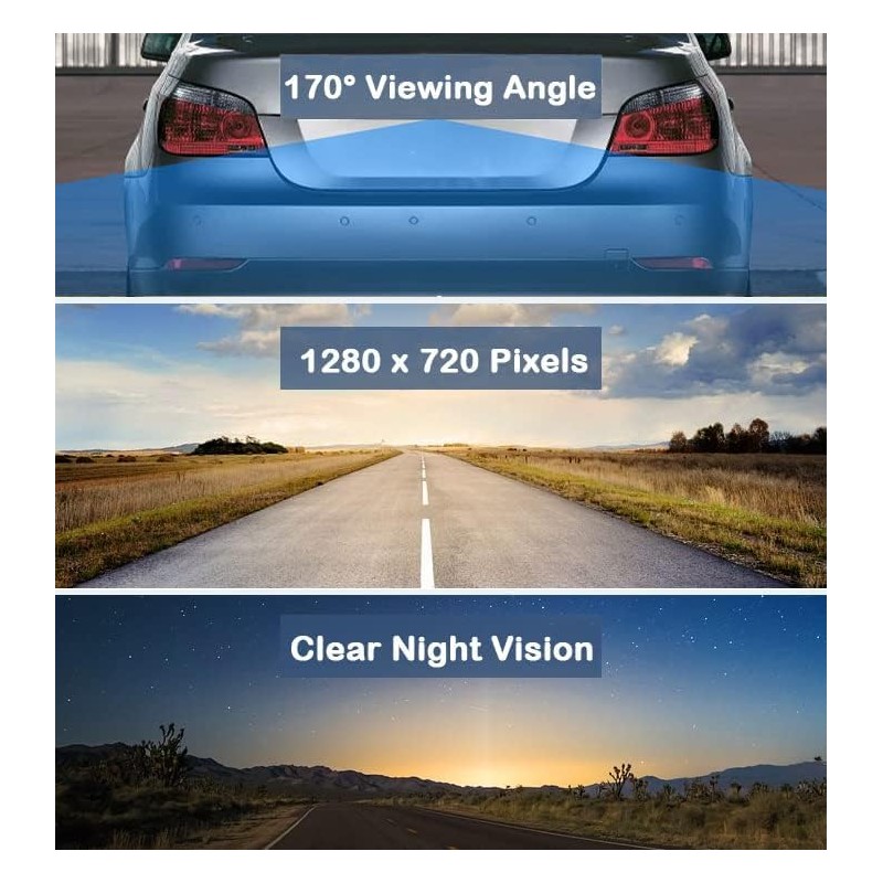 • 🟢Perfect backup camera for most of vehicles 🟢170° viewing angle macro lens give you a wide viewing vision, high sensitive color CMOS image sensor. 8 IR led will supply you clear image for night time. 🟢Waterproof IP-67 Standard, shockproof & dust-proof level, high performance in all-weather condition. 🟢Easy to install, the camera can be installed on the car plate or the back of the car. It's easy and fast to install.