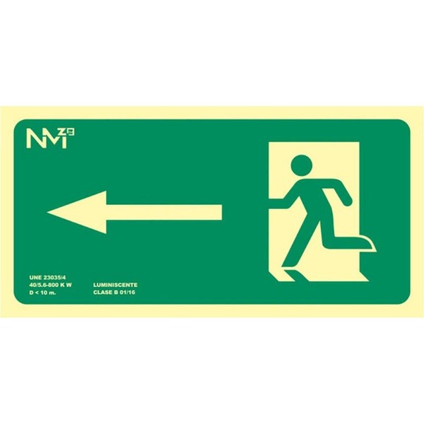 - Zugelassenes Impfschild mit Piktogrammen und Pfeil nach links (Norm UNE 23033/1:2019)
