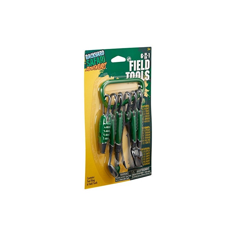 Backyard Safari 6 in 1 Field Tools lets little ones shovel, brush, grab or probe. Whether gathering samples or excavating that dig site, up close or in hard to reach spaces, these sturdy tools will handle hundreds of field tasks. Clipped to your Cargo Vest, they stay within reach to snap off - and back on - with single-handed ease. And when you discover that interesting find, signal the rest of your field crew with the high audible field safety whistle. Recommended for children 5 years of age and older.
