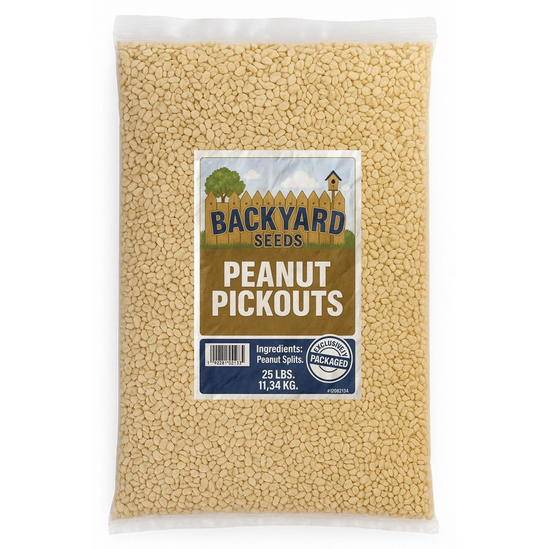 Backyard Seeds Shelled Peanut Pickouts – 25 lb Bag of Premium No-Waste Peanuts for Wild Birds, Woodpeckers, Jays, Squirrels & Wildlife