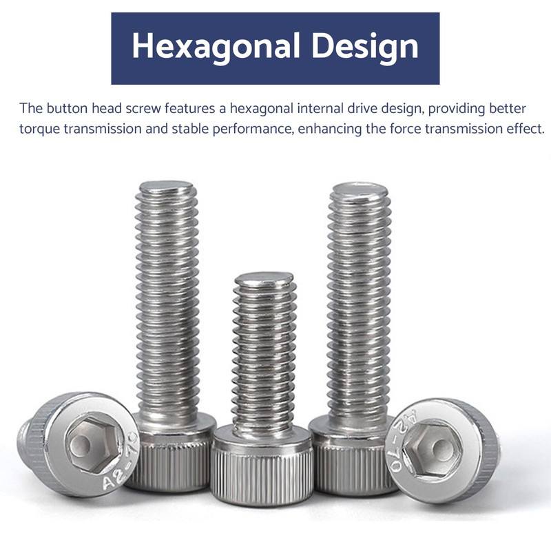 - Premium Materials:The hex socket button head screws are made of A2 V2A stainless steel, offering superior corrosion resistance, better rust protection, longer lifespan, and enhanced durability compared to traditional screws