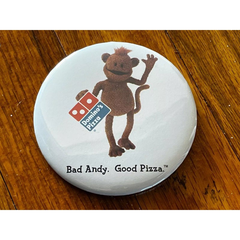 Bad Andy Domino's Pizza Advertising Promo Button Pin BadAndy Henson NEW 2000