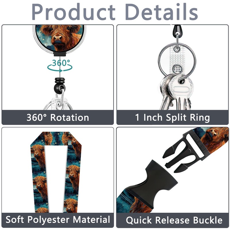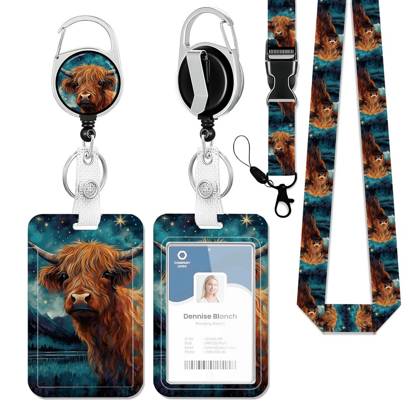 Badge Holder with Lanyard,Highland Cow Lanyards for ID Badges, Badge Holder with Breakaway Lanyard Keychain, Card Protector for Women, Gifts for Teacher Nurse Workers