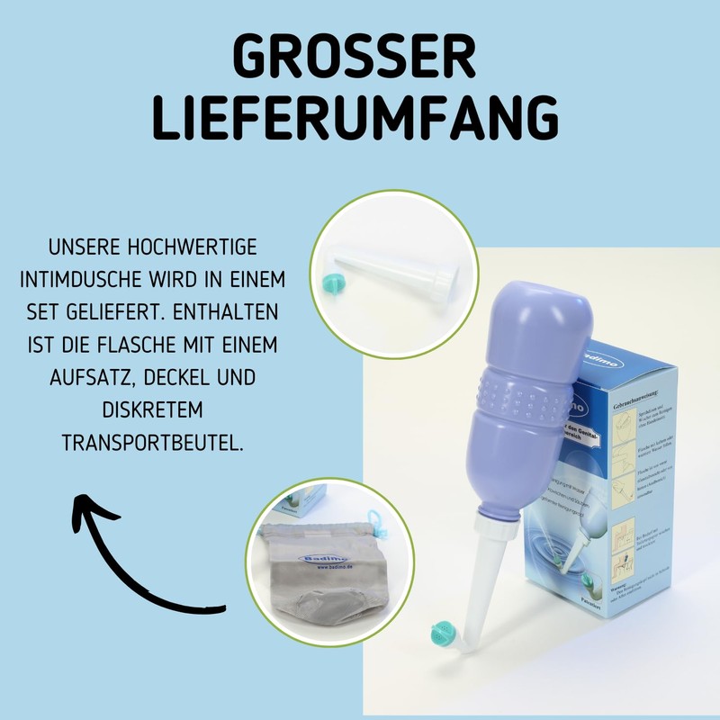 - 100% hygiene and comfort: the intimate shower for on the go offers gentle and thorough cleaning with water, without the use of chemicals. Simply fill it with water, squeeze it together and enjoy hygienic cleaning, anytime and anywhere.