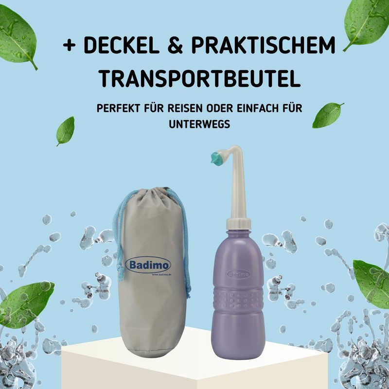 Badimo Butt Shower - Travel Bidet Saves Paper - Mobile Travel Butt Shower - Hygienic Cleaning on the Go - Popo Shower + Lid & Travel Bag