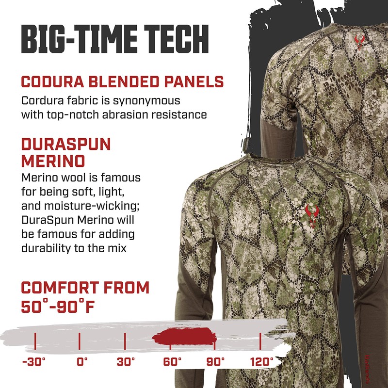 - Versatile - The Pecora Midweight Merino 1/4-Zip is designed to be used as a base, mid, or outer layer, making it highly versatile for different hunting conditions.