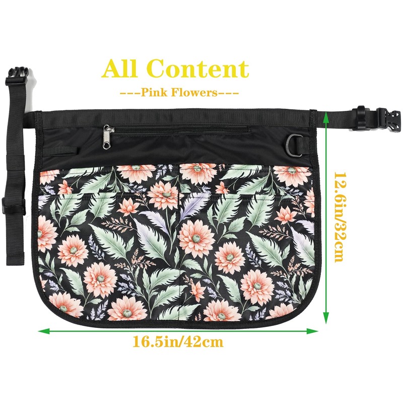 Bafelia Small Size Cleaning Caddy Apron for Women with 5 Pockets, Professional Waterproof Cleaning Supplies for Housekeepers, Pink Flowers, Small