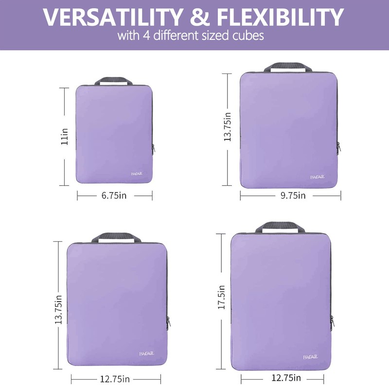 BAGAIL 4 Set Compression Packing Cubes Travel Expandable Packing Organizers(Lavender,4 Set)