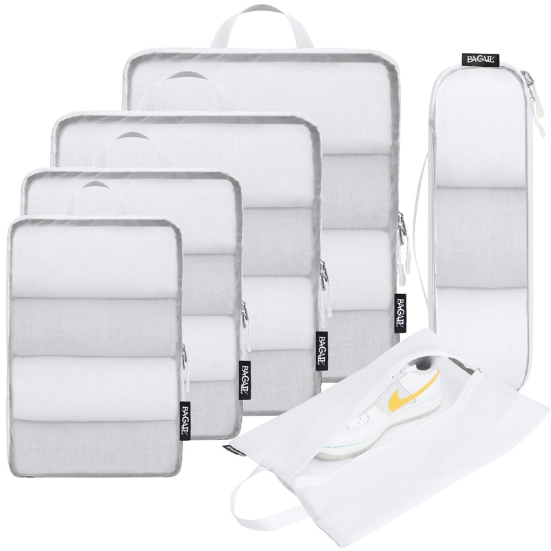 BAGAIL 5 Set/6 Set Ultralight Compression Packing Cubes Travel Accessories Expandable Packing Organizers(White 6Set Mesh Pattern)