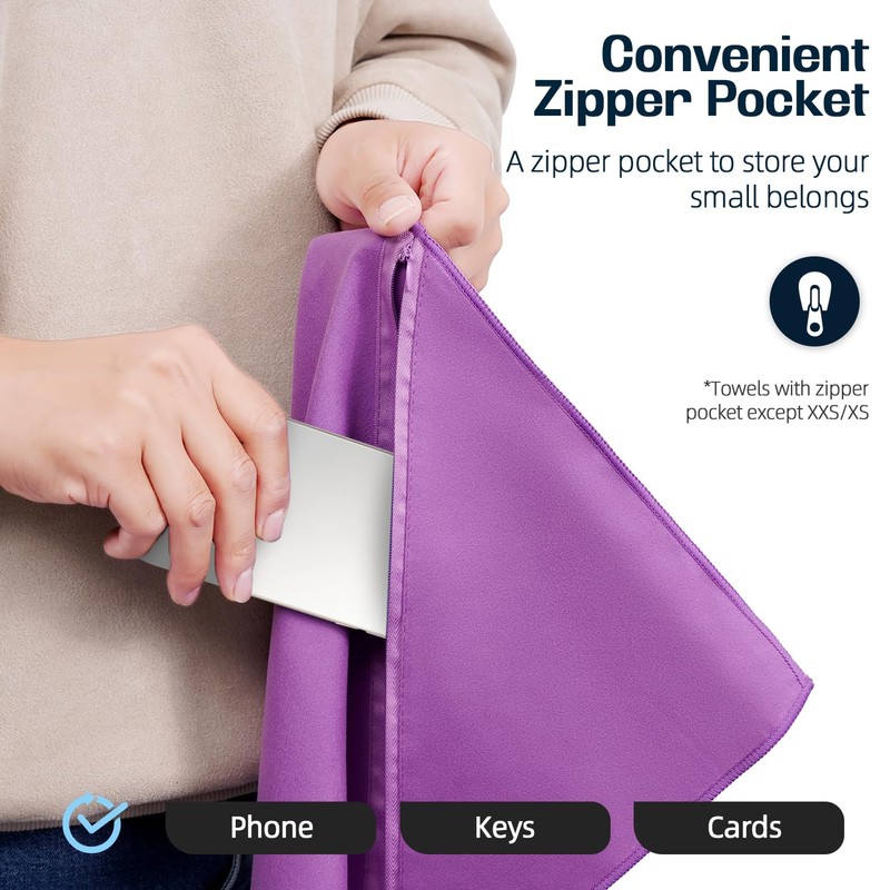 BAGAIL Camping Towel with EVA Case, Compact & Ultra Soft Microfiber Travel Towel - Super Absorbent & Lightweight Quick Dry Towels for Sports, Beach, Gym, Backpacking, Hiking and Yoga - Purple, XXS