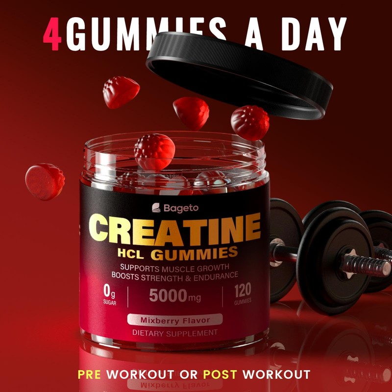 - Convenient & Portable: Say goodbye to messy Creatine HCL powders and bulky containers! Our HCL Creatine offer a simple and convenient way to consume your daily of Creatine. With just three delicious gummies per serving, you can easily fit them into your active lifestyles. Each bottle contains 120 gummies, providing a generous 40-day supply. Take them to the gym, office, or on-the-goperfect for travel and busy schedules
