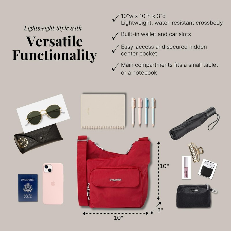 - LIGHTWEIGHT AND WATER-RESISTANT: Our water-resistant crossbody travel bag weighs just 9 ounces and measures 10” tall, 10” wide, and 3” deep. It includes adjustable straps for a customized fit, making it the perfect lightweight companion for your travels.