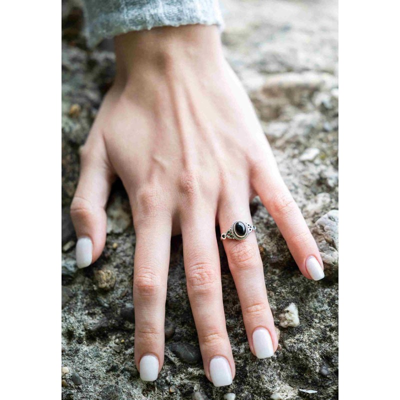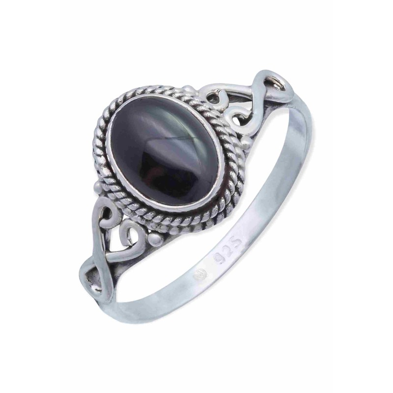 BAGHIMI Oval Ring Made of 925 Sterling Silver, Onyx