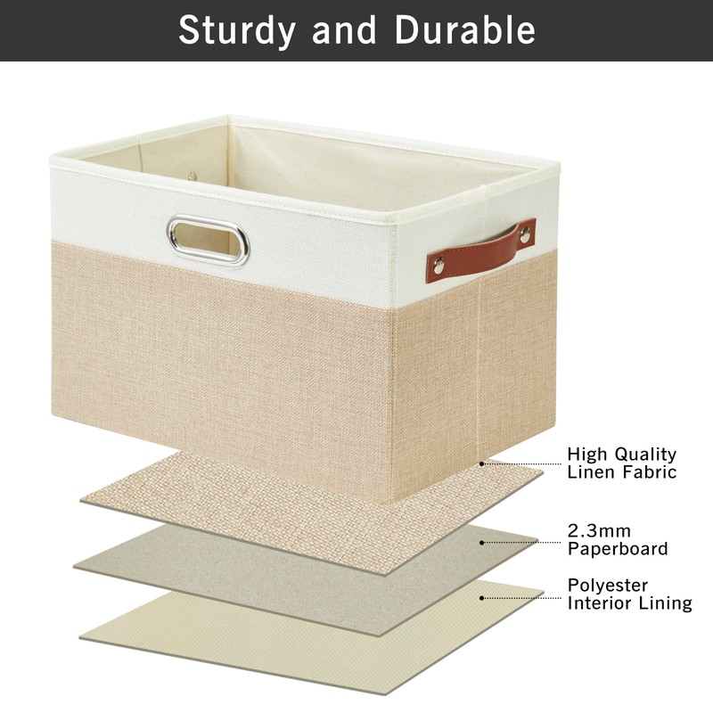 - 【High Quality】Our fabric storage bins are made of natural linen fabric, with high quality non-woven fabric lining. The sides and bottom are supported by 2.5 mm paper board. They are strong and durable enough, which could create a clean environment for you.