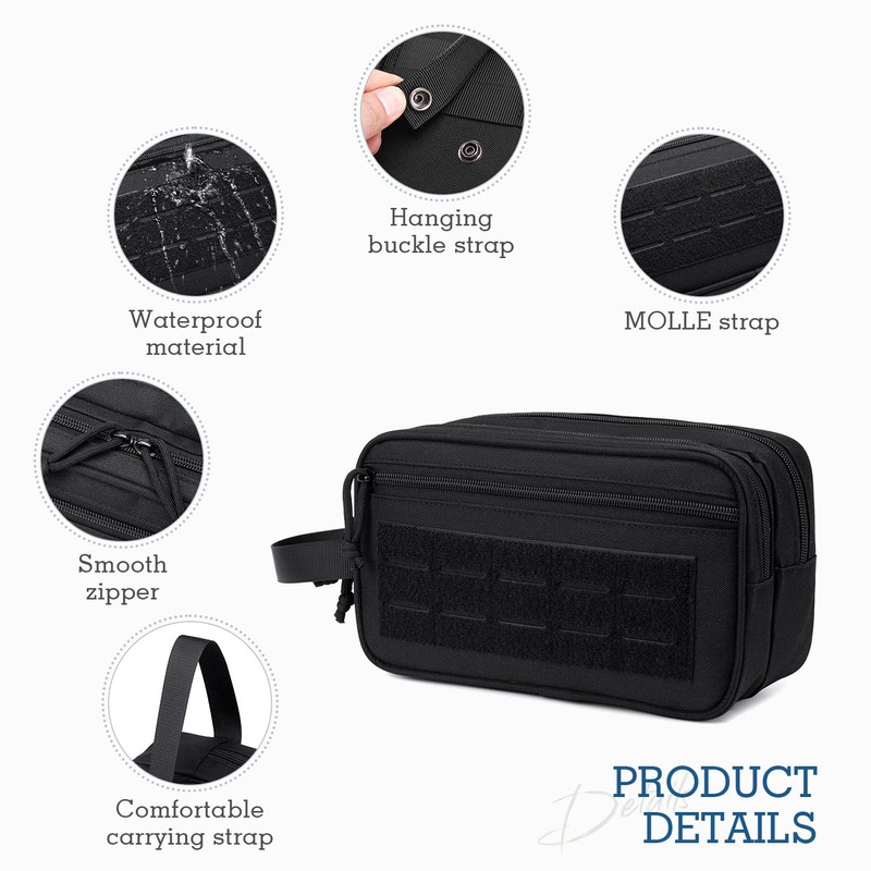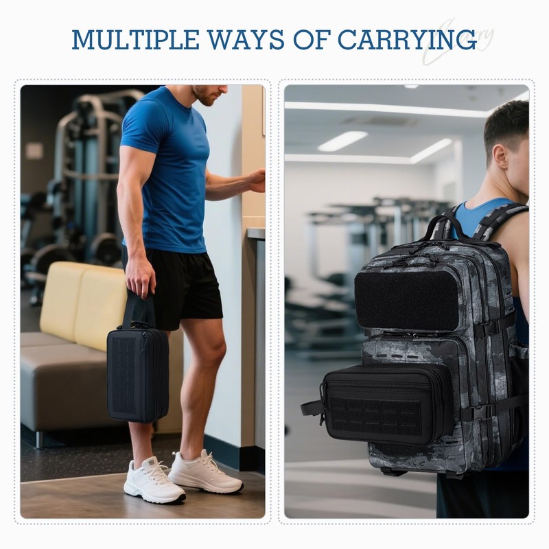 - Multifunctional design: this tactical bag is equipped with a practical side handle. The front pocket has a MOLLE system to attach additional bags or equipment and expand the storage space. Three vertical straps and metal clasps on the back allow it to be attached to a tactical backpack or other gear.