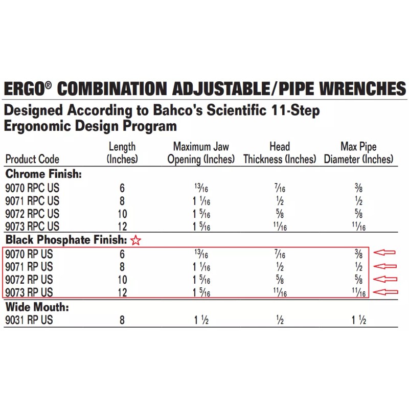 - Type: Ergo Combination Adjustable/Pipe Wrenches
