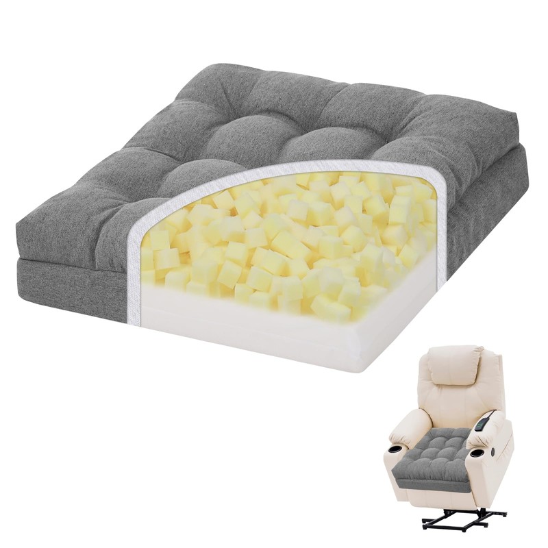 - [Product Dimensions and Design] Measuring 20 inches long, 20 inches wide, and 5 inches thick, this cushion is perfectly tailored for your favorite recliner, armchair, or sofa. Upgrade your seating experience and enjoy the luxurious comfort you deserve. The recliner seat cushion is specially suitable for elderly and adults post surgery, which will raise height and help them easy to stand up from the recliner.