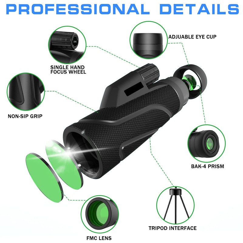 • 【Beeindruckende Vergrößerung】: Dank hochwertiger Linsen und hoher Vergrößerung können Sie mit diesem Monokular das Ziel näher heranholen und entfernte Schönheiten bewundern, sei es das Laufen wilder Tiere oder die Pracht der Natur.