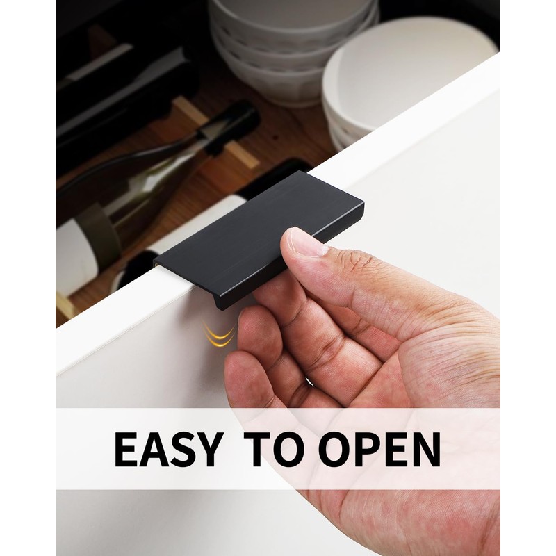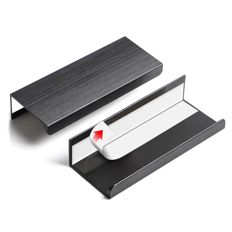 BaiNong 5 Pack self Adhesive Cabinet pulls 3 inch Stick on Handles Black Finger pulls for cabinets Adhesive Cabinet Handles Adhesive Drawer pulls Drawer Edge Concealed Pull Seam Handles Flat Pull
