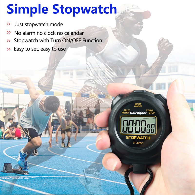 Bairnqner Stopwatch Timer with Countdown, ON/Off Simple Operation No Clock No Date, Digital Stop Watch for Sports, Black