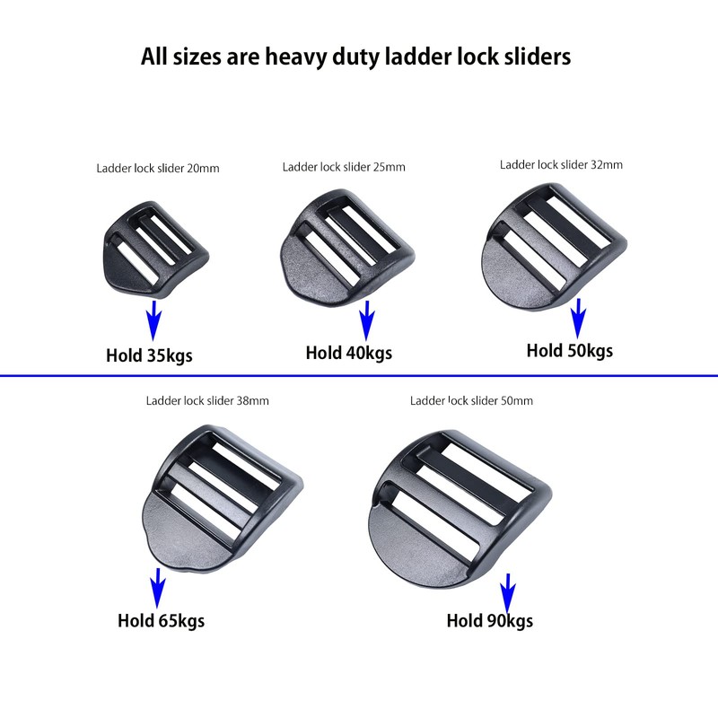 These plastic ladder lock slider buckles passed tests. They are all heavy duty ladder locking sliders.