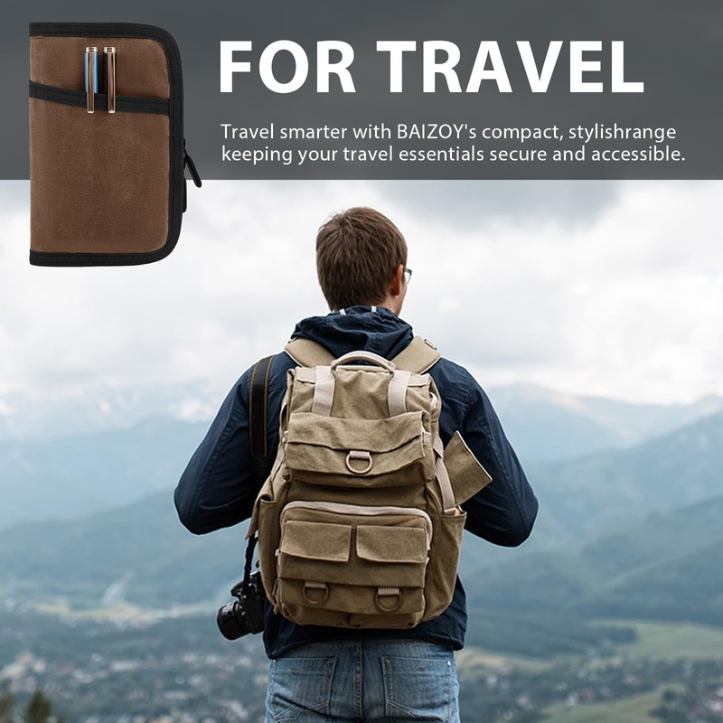 Baizoy Field Notes Notebooks Cover for 3.5 X 5.5 Inch Pocket Notebook Covers With Zipper Pen Holder,Water Resistant Journal Notebook Planner, Classy Waxed Canvas EDC Wallet (Dark brown + Field